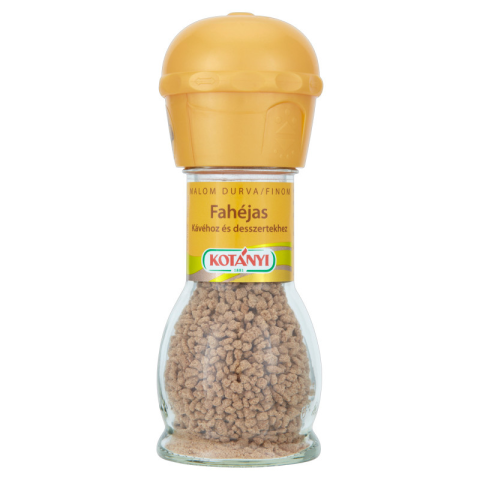 Kotányi fahéjas malom 66 g Összetevők: cukor, fahéj (7,5%), glükózszirup, karamellszirup, napraforgóolaj, természetes fahéj aroma.