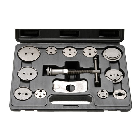 13 részes alapkészlet a fékdugattyúk visszaállításához;Jobbkezes menetű visszatekerő szerszám;Számos autó típushoz használható.Tartozékok:A kompatibilis modelleket tartalmazó tájékoztató