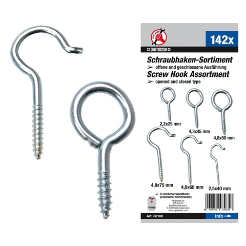 1 kép    Kraftmann 142 darabos kampós csavar (BGS 88180)