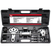 Két és három karú, külső és belső lehúzóként is használható;Kovácsolt króm-vanádium acélból készül.A készlet tartalma:1 db csúszókalapács: 2300 g2 db kerékagy adapter1 db kétkarú lehúzó konzol1 db háromkarú lehúzó konzol3 db húzókar1 db önszorító fogó
