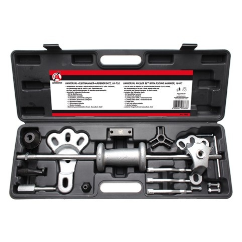 Két és három karú, külső és belső lehúzóként is használható;Kovácsolt króm-vanádium acélból készül.A készlet tartalma:1 db csúszókalapács: 2300 g2 db kerékagy adapter1 db kétkarú lehúzó konzol1 db háromkarú lehúzó konzol3 db húzókar1 db önszorító fogó