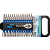 - 1/4-os reverzibilis racsnis hajtószár - 12 db 1/4-os Pro Torque® dugókulcs fej: 4-4,5-5-5,5-6-7-8-9-10-11-12-13 mm - 14 db 1/4-os bit dugókulcs fej: TX10-15-20-25-30, csillag PH1-2 lapos 4-5,5-7 mm, Imbusz 3-4-5-6 mm