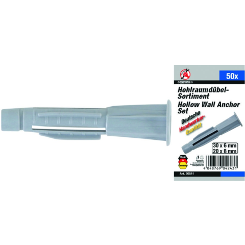 Galléros kivitel;Műanyag tasakban;Németországban készült.A készlet tartalma:30 db tipli: 6 mm-es átmérő20 db tipli: 8 mm-es átmérő