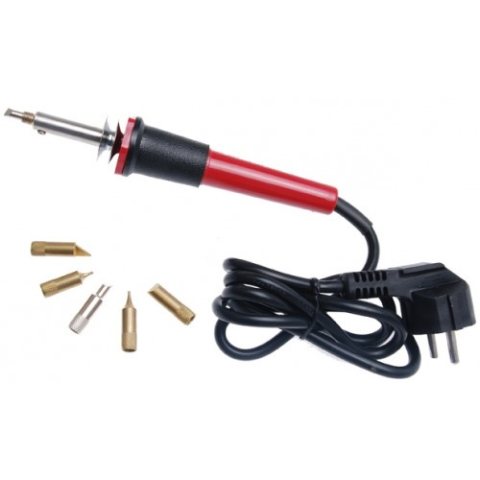 Fához, bőrhöz és parafához is jól használható.A készlet tartalma:1 db fa égető és forrasztó páka, 30 W1 db taró állvány1 db véső csúcs1 db rövid csúcs1 db hosszú csúcs1 db vágó csúcs1 db forrasztó csúcsTechnikai adatok:Max. hőmérséklet:250 - 260°CÜzem