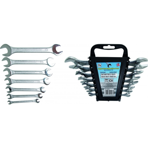 Kovácsolással króm-vanádium acélból készül;Polírozott fejek;Megfelel a DIN 3110 szabványnak;Hordfüles műanyag tokban.Méretek:6x7 - 8x9 - 10x11 - 12x13 - 14x15 - 16x17 - 19x22 mm
