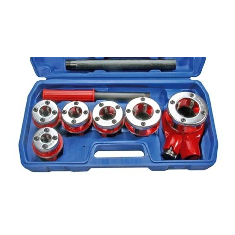 Racsnis menetmetsző adapter Kétrészes hajtószár Menetmetsző méretek: 6.3 mm (1/4) - 10 mm (3/8) - 12.5 mm (1/2) - 20 mm (3/4), 25 mm (1) - 31 mm (1 1/4) Műanyag kofferben