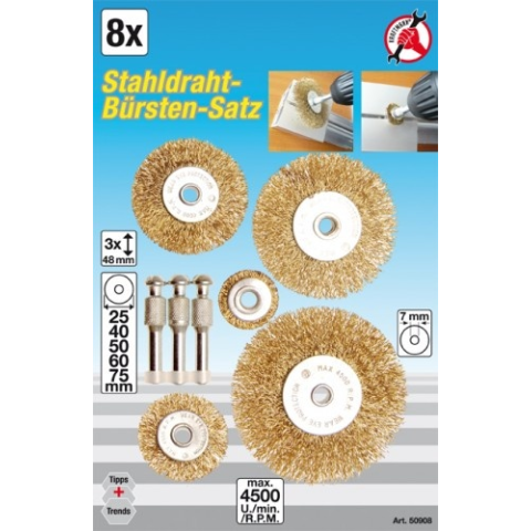 1 kép Kraftmann 8 részes fúróba fogható acél drótkefe készlet