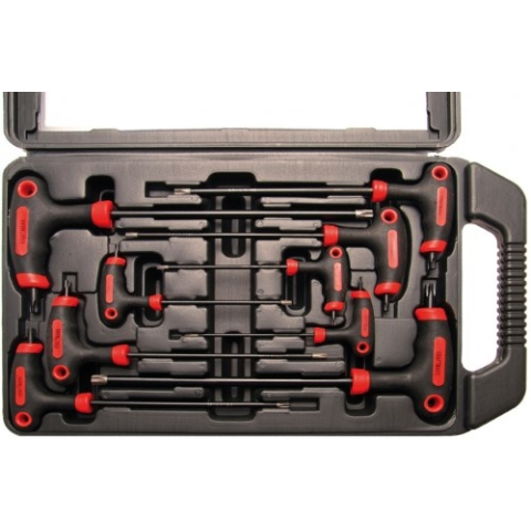 Króm-vanádium acélból készül;A rövid szárak feje fúrt;Két komponensű markolat;Műanyag kézi táskában.Méretek:T10x145 mmT15x145 mmT20x145 mmT25x210 mmT27x215 mmT30x215 mmT40x220 mmT45x275 mmT50x280 mm