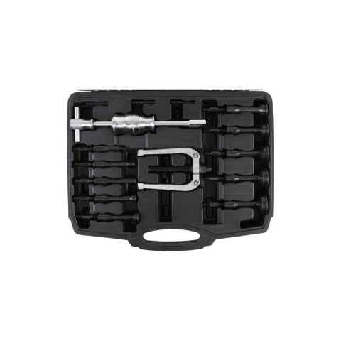 Belső csapágy és persely kihúzó készlet. A termék jellemzői: Alkalmas csapágyak kiszereléséhez, zsákfuratba szerelve. Használható például hajtóművek javítására. Műanyag tartókofferben szállítva. Bruttó súly: 5690 g A készlet tartalma: 1 db c