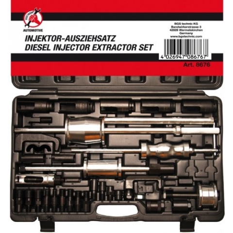Számos adapterének köszönhetően a készlet alkalmas a legtöbb dízel injektor kiszerelésére.A készlet tartalma:3 db csúszókalapács1.6 kg, 160 mm-es hossz2.7 kg, 460 mm-es hossz5.1 kg, 600 mm-es hossz2 db lehúzó karom13.7 x 18 mm, 105 mm-es hossz12.7 x 1