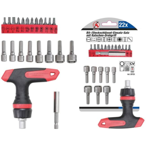1 kép Kraftmann Dugókulcs és bit készlet | kétirányú racsnis T hajtószárral | 22 darabos (BGS 20122)