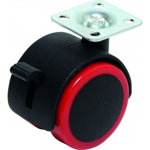 1 kép    Kraftmann Dupla kerekű, fékes, piros-fekete, önbeálló görgő, 50 mm (BGS 80338)