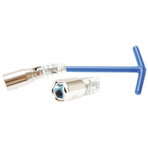- Rugós-csuklós szár- PVC-vel bevont T-alakú fogantyú- Krómozott- SW 16 és SW 20,8 mm gyújtógyertyákhoz