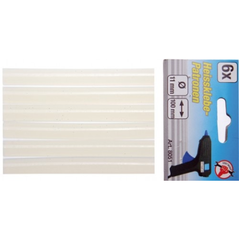 6 db átlátszó ragasztórudat tartalmaz;11 mm-es átmérő;100 mm-es hossz;A BGS 8050 és BGS 85800 ragasztópisztolyokhoz is használható.
