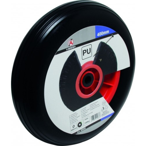 Poliuretánból készült, tömlő nélküli, tömör abroncs;Nem kell pumpálni, nem ereszt le, nem lesz defektes.További adatok:Max. terhelhetőség:150 kgKerék átmérő:400 mmTengely átmérő:20 mmTengely szélesség:75 mm