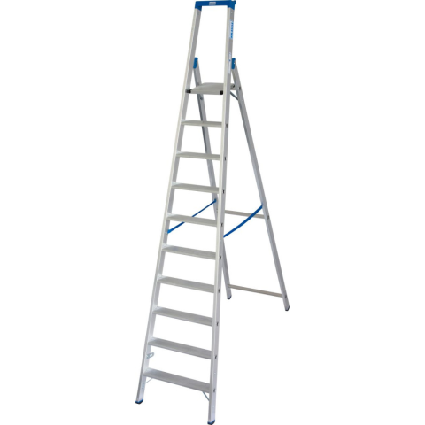 Krause Stabilo alumínium egy oldalon járható lépcsőfokos, robusztus, professzionális felhasználásra készült állólétra. Nagyméretű, biztonságos állást garantáló, csúszásgátló dobogóval.