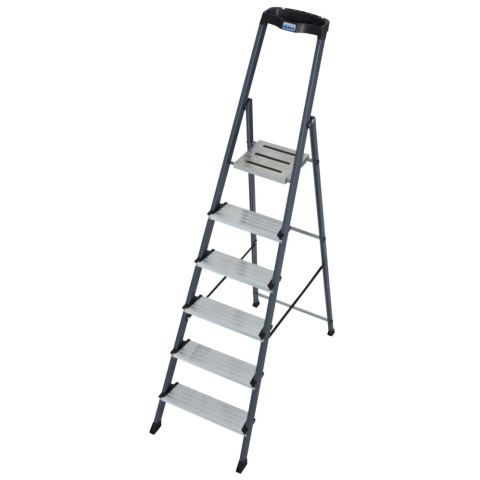 1 kép    KRAUSE 126443 „SECURO“ LÉPCSŐFOKOS ÁLLÓLÉTRA ELOXÁLT 6 FOKOS