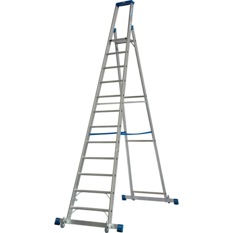 Robosztus, gurítható alumínium állólétra kitámasztóval melynek segítségével megoldott az egyszerű helyváltoztatás és nagyfokú biztonság, praktikus tárolótálcával ellátva a professzionális használat érdekében. A két stabil kiegészítő kitámasztó az auto