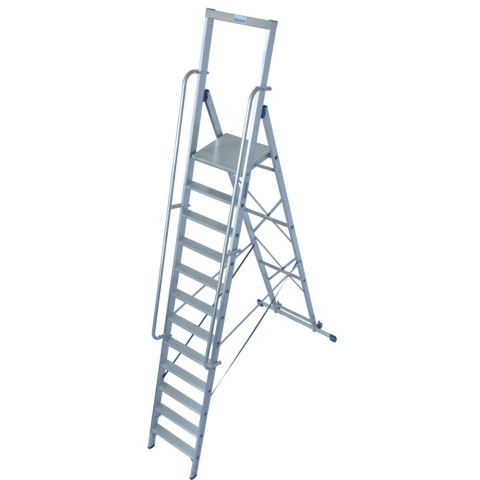 Lépcsőfokos állólétra nagy dobogóval Gurítható lépcsőfokos állólétra nagy, kényelmes állófelülettel és biztonsági kapaszkodókerettel. Extra magas (1,0 m) kapaszkodókeret integrált tárolófelülettel a hátkímélő munkavégzés érdekében
