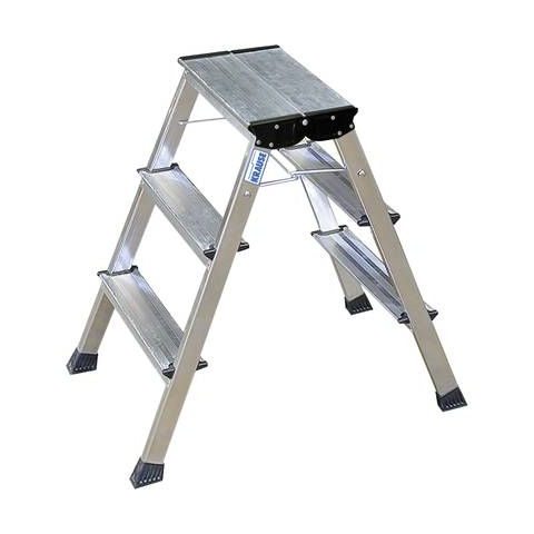 1 kép KRAUSE 130068 Kétoldalon járható, gurítható alumínium fellépő létra (130068)