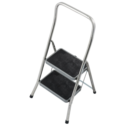 A nagy méretű, gumírozott lépcsőfokokkal ellátott alumínium fellépő kis helyen tárolható és a legkülönbözőbb beltéri munkálatokhoz is használható. Magas kapaszkodókeret (600 mm) A nagy, gumírozott fokok kényelmes és biztos fellépést garantálnak A mere