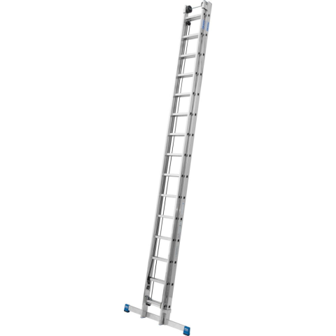 Kétrészes húzóköteles alumínium létra körbefutó biztonságos magasságállítással.