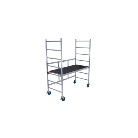 A könnyen mozgatható és szerszámok nélkül összeszerelhető alumínium összecsukható állvány ideális beltéri és kültéri munkákhoz is. Maximális munkamagassága 2,90 m.