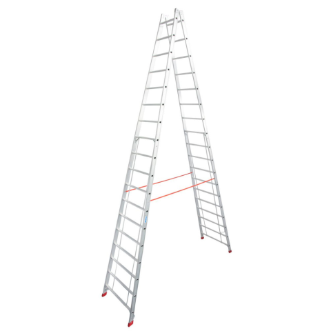 Létrafokos két oldalon járható létra Professzionális, két oldalon járható alumínium létra bordázott fokokkal és csavarokkal rögzített fémcsuklókkal a maximális stabilitás érdekében. Nagy szilárdságú alumínium csuklók Csavarokkal rögzített csukló- és hev