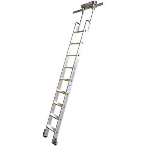 Lépcsőfokos polclétra, T-vezetősínnel Lépcsőfokos alumínium polclétra a T-sínrendszerhez használható integrált futószerkezettel. A T-vezetősínek szorítókötése miatt nincs szükség a rögzítősínek megfúrására A szárak és a fokok közö