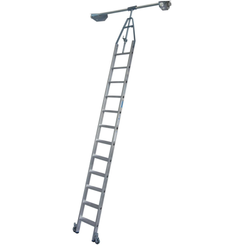 1 kép KRAUSE 819475 STABILO lépcsőfokos polclétra duplapolcos cső-vezetősínnel 12 fokos