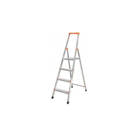 Állólétra, 4 lépcsőfokos, alumínium, KRAUSE "Solidy" - UL15 - Fellépők és létrák - - egy oldalon járható alumínium állólétra magas kapaszkodókerettel és széles, csúszásgátló fokokkal