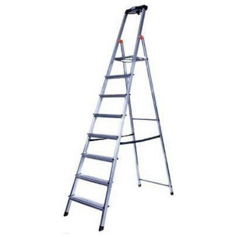 Egy oldalon járható alumínium állólétra magas kapaszkodókerettel és széles, csúszásgátló fokokkal. Könnyű, de stabil profilok alumíniumból. Nagy eszköztartó a szerszámok tárolására, két beépített kampóval. 80 mm széles, bordázott, csúszásgátló fokok a