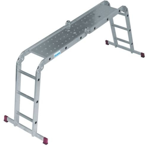 - Négyrészes univerzális alumíniumlétra csuklókkal: használható támasztó vagy állólétraként, illetve állványként (csak a 4x3 fokos változat esetén)