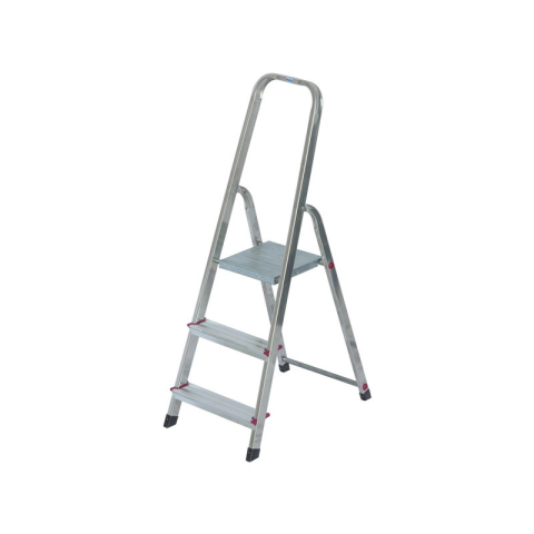 Jellemzők: - Körbefutó biztonsági korlátkeret - Szegecselt csuklókapcsolatok - Bordázott acél dobogó - Stabil, szegecselt kapcsolat a szárak és a fokok között - Csúszásmentes lábak a biztos állás érdekében - Stabil alumínium zártszelvényből készült sz