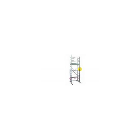 segítségével egyszerűen mozgatható. 2 x 14 fokos támasztólétraként, valamint 2 x 7 fokos két oldalon járható létraként is alkalmazható. A járólap csúszásmentes, időjárásálló. 56 cm széles, 150 cm hosszú. Az állvány 4,2 m magas, munkamagassága körülbelül 5 méter. Minimális beépítési magassága 0,52 m, terhelhetősége 150 kg.