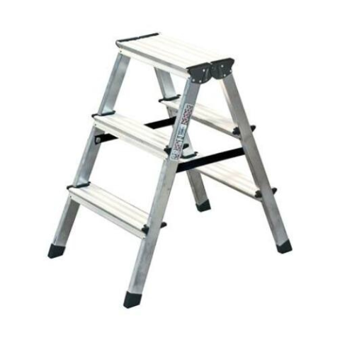 Könnyű, mindkét oldalon járható alumínium állólétra 3,30 m-es munkamagasságig (8 fokos változat). Leírás: Robusztus, ütésálló acél csuklókapcsolatok 6 helyen szegecselt, robusztus kapcsolat a fokok és a szár között, amely nagyfokú stabilitást kölcsönöz Csúszásmentes, bordázott, padlókímélő lábdugók Szakadásbiztos hevederek A két oldalon járható állólétrákra csak a felülről számított harmadik lépcső-/létrafokig szabad fellépni az EN 131 – 3.