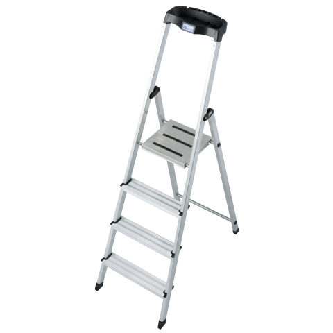 Könnyű és biztonságos lépcsőfokos állólétra ergonomikus kialakítású, multifunkcionális tálcával és csúszásmentes dobogóval.