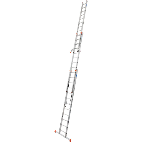 Háromrészes alumínium sokcélú létra, amely támasztó-, toló- és állólétraként is használható a kitolható létrarésszel