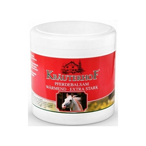 A Kräuterhof extra erős melegitő lóbalzsam kiválóan alkalmas izomlazitásra (sportolás előtt bemelegitésre), fájdalomcsökkentö hatású, enyhíti az izomlázat és izomfájdalmakat. Gyógynövények tömény kivonatát tartalmazza, ezáltal exra erős hatású. Tartalmaz: