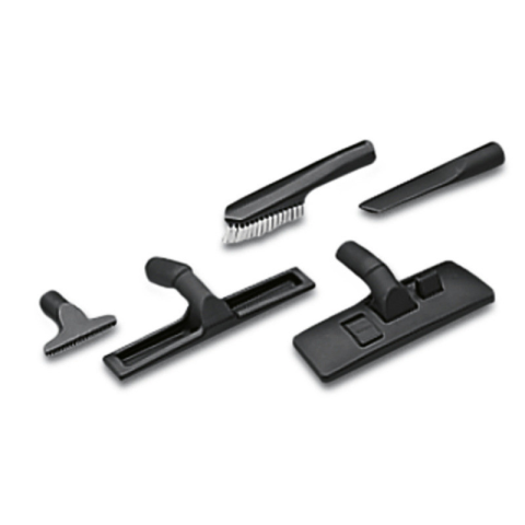 Tartozékkészlet a Kärcher nedves és száraz porszívóihoz. Tökéletes kereskedelmi és ipari használatra. Az összes kiegészítő készlete a Kärcher nedves és száraz porszívóihoz, amely a következőket tartalmazza: több funkciós fúvóka (6.900-425.0), résfúvóka
