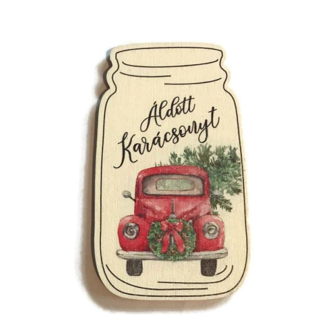 Fa tábla - Áldott Karácsonyt teherautós Méret: 5,5x9,3cm Lézervágott, színes, nyomtatott fa lap Vastagság: 3mm Fa tábla - Áldott Karácsonyt teherautós Méret: kb 5,5x9,3cm