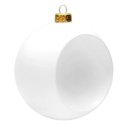 Műanyag karácsonyfadísz - Gömb mélyedéssel - 10cmForma: Gömb mélyedésselÁtmérő: 10cmMéllyedés átmérője: 8cmMéllyedés mélysége: 2cmAkasztó magassága: +2cmSzín: törtfehér Műanyag karácsonyfadíszA műanyag forma díszíthető festéssel, decoupage technikával,
