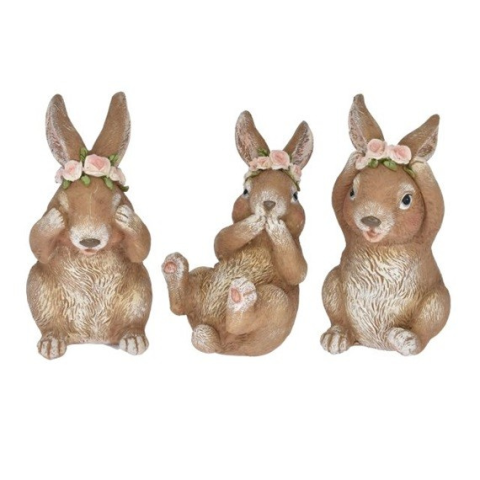 Nyúl virágkoszorúval - nem lát Méret: 7x8x13cm Szín: barna, rózsaszín Megrendelési egység: 1db Nyúl virágkoszorúval - nem lát Dekorációs figura asztaldíszek, vagy ajtó kopogtatók készítéséhez.