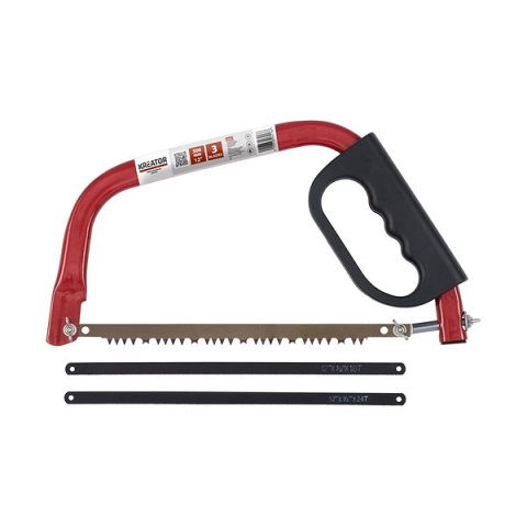Kézi fűrész - íves, használható fa és fém megmunkálásához, fűrészlap hossza 30 cm, cserélhető fűrészlap, markolat anyaga műanyag, tömege 0,48 kg A Kreator KRT807001 kézi ívfűrész könnyű és gyors vágást tesz lehetővé. A fűrész kiváló minőségű fűrészlapjával finom vágást biztosít. Az ergonomikus markolat megfelelően erős fogást biztosít és garan