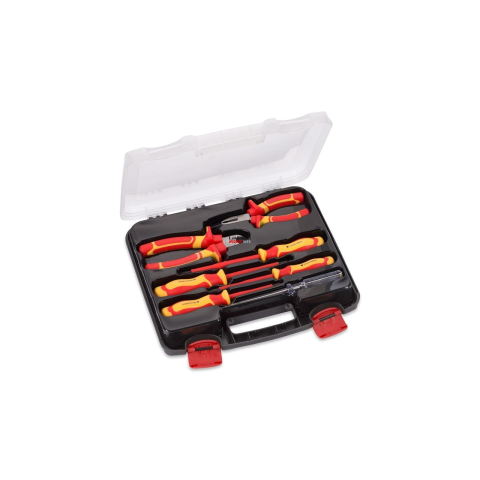 7 részes szerszámkészletAnyaga: króm-nikkelTanúsítvány: VDE 1000V A készlet tartalma:- 4db szigetelt csavarhúzóMágneses hegyMéretek:SL4x100 mmSL5,5x125 mmPH1x80 mmPH2x100 mm- Feszültség mérő: AC 125~250VHossza: 190 mm - Oldalcsípő fogó: 150 mm- Telef