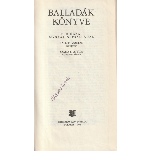 Kriterion Balladák könyve (1971) antikvárium - használt könyv 1 kép