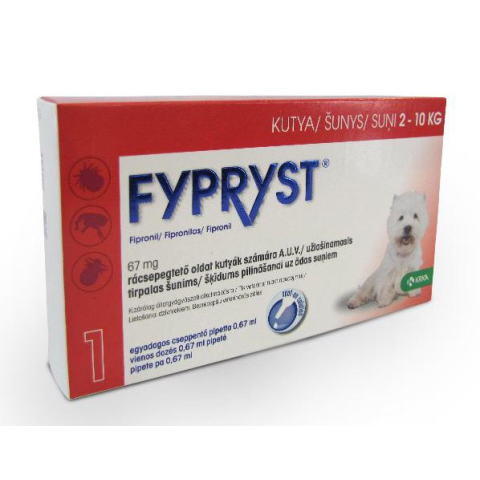 Rácsepegtető oldat (Spot-on) kistestű – 2-10kg közötti - kutyák részére. Bolha, kullancs, szőrtetvesség ellen. Hatóanyag: Fipronil Fypryst rácsepegtető oldat kistestű (2 - 10 kg kg közötti) kutyák részére. Kutyák bolha, kullancs vagy szőrtetvesség