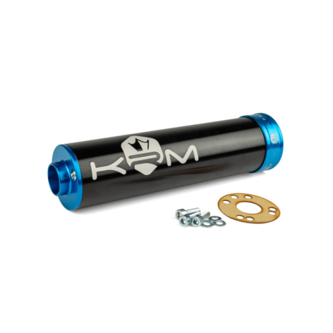 Silencer KRM Pro RideSilencer KRM Pro Ride, kiváló minőségű alumínium hangtompító, tökéletes KRM erős verseny kipufogóihoz, és kompatibilis sok más tuning kipufogóval. Ez a KRM Pro Ride hangtompító fekete/kék színben készült. 70cc-től 90cc-ig terjedő motorokhoz fejlesztették ki, és enyhe, de észlelhető teljesítménynövekedést biztosít.Verseny hangtompító 70 - 90 ccmEz a hangtompító a KRM verseny kipufogókhoz készült, amelyek nem tartalmaznak hangtompítót,