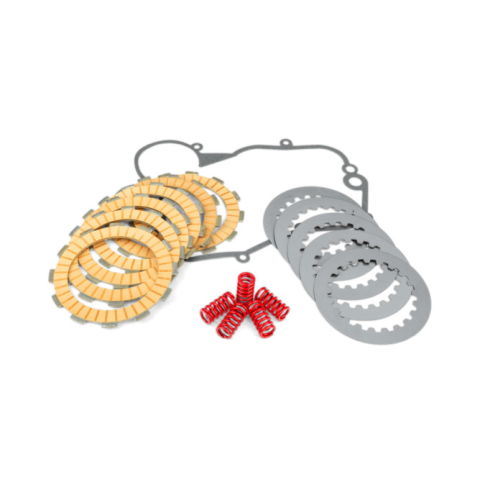 Verseny kuplung Derbihez6 tárcsás kuplung Derbi, Aprilia és Gilera 50cc motorokhoz, a francia tuning szakértők kiváló minőségű terméke.A kuplung készlet tartalmazza:6x súrlódó tárcsa5x sima tárcsa5x kemény kuplungspring1x kuplung ház tömítés1x KRM pro ride matricaA KRM kuplung készletek nagyon magas minőségű verseny kuplungok, amelyek kifejezetten versenyzéshez és magas teljesítményű beállításokhoz lettek tervezve, 18 lóerőtől felfelé (80 - 100 cc). Ha ez a