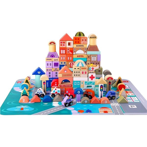1 kép Kruzzel 23519 Vidám város Fakocka + alátét, 115 db